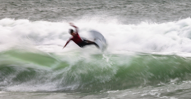 Personally, I love abstract photography and finding creative ways to present a kind of subverted version of scenes. In surfing, the standard modus operandi is to show scenes where the surfers are as clean and crisp and sharp as is humanly possible. I like doing different things, such as slowing the shutter speed down so that you get interesting patterns of whitewater cascading off the sides of surfboards as the surfers turn or interesting effects on bodies that are midway through critical turns on a wave. The only problem is that if you try to slow the shutter speed of your camera down to, say, 1/10 of a second in the middle of the day, your entire image will almost always be blown out and completely white. Take a look at the images below to see what I mean.