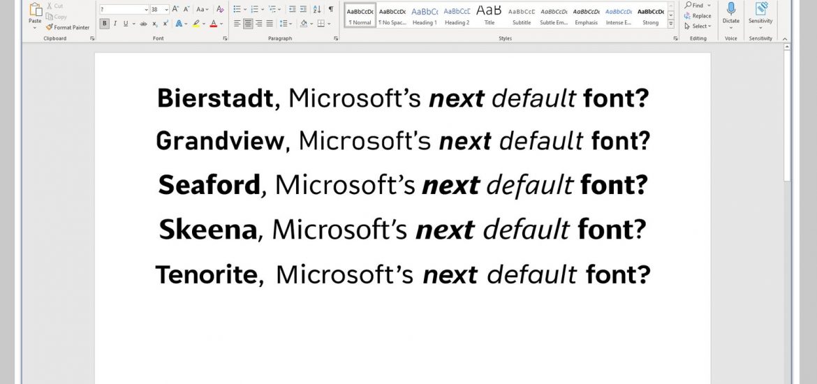 For almost 15 years, Calibri has reigned as the default and therefore dominant font choice for Microsoft systems. It has appeared countless times in unformatted Word documents, PowerPoint presentations, and Excel spreadsheets, a typographical reprieve for the decision-paralyzed. But now there’s a new sans serif in town. Actually, five of them: Microsoft announced that it plans to replace Calibri as the default font with one of five new typefaces it released this week.