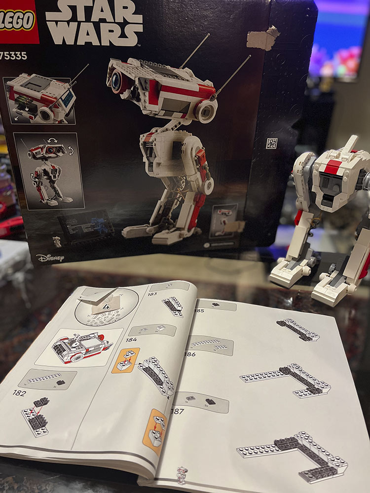 While I’ve always enjoyed building with LEGO bricks, I’ve never been an avid collector or builder. Most of my experience has been with LEGO sets that are Microfighter sets. Picking up a larger one can feel intimidating for someone who doesn’t build them regularly. Not so with BD-1! While the instruction booklet does seem intimidating at first due to its size, the instructions were clear and easy enough to follow without much trouble. This is notable, especially given how the vast majority of pieces are white, red, black, or shades of gray and could easily be confused for similarly sized or shaped pieces. When mistakes are made because of the builder’s own error, they’re simple enough to correct, which is part of the joy of LEGO building. (However, BD-1 is still complicated enough that more experienced LEGO fans will appreciate the build process.)