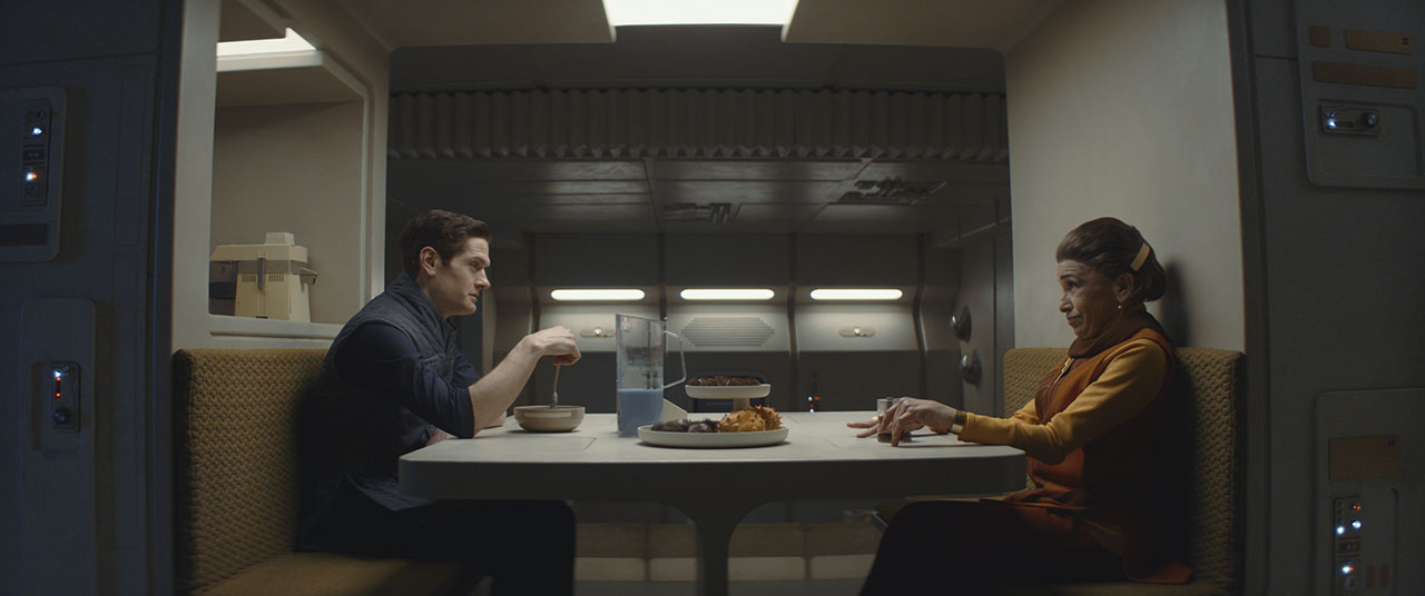 One minute you’re playing stormtrooper, then next you’re eating space cereal with mom. A down-and-out Syril Karn, having returned home after the debacle on Ferrix, “enjoys” breakfast and conversation with his mother, Eedy. Played with a hilarious overbearing air by Kathryn Hunter, Eedy quickly takes charge of her son’s next steps — making him feel way better, we’re sure.